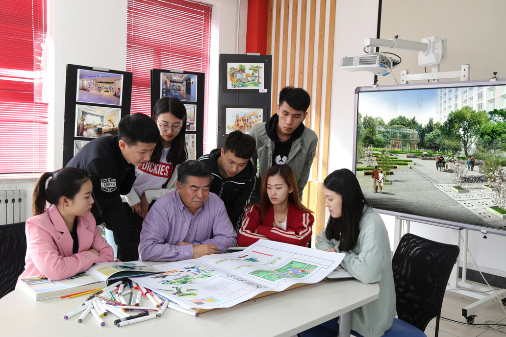 景观设计教学团队与景观设计公司共同完成了5项景观设计项目,为了很好的完成这些项目,工作室配置了丰富的素材案例库,在这里做设计、谈单、作品研讨、纠错,培养学生精益求精的工作态度和为客户着想的意识。学生可以做大作业、毕业设计、课题设计。模拟企业工作环境,进行设计作品分享、教学研讨,企业设计师给学生授课,参与企业的管理、洽谈、设计、施工等过程,使学生能直接接触实体项目,迅速提升能力,积累实际工作经验,实现岗位需求与人才培养的对接。主要承接楼体建模、绿化、景观设计等工作。近几年完成社会、企业委托的“哈尔滨北大荒辉煌居住小区规划”等12项课题。