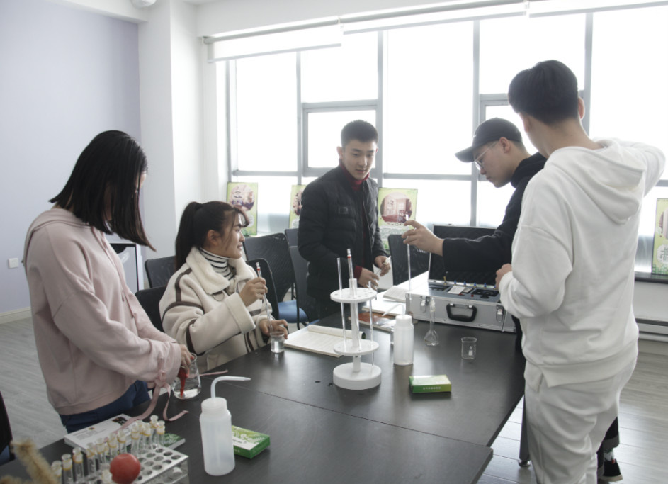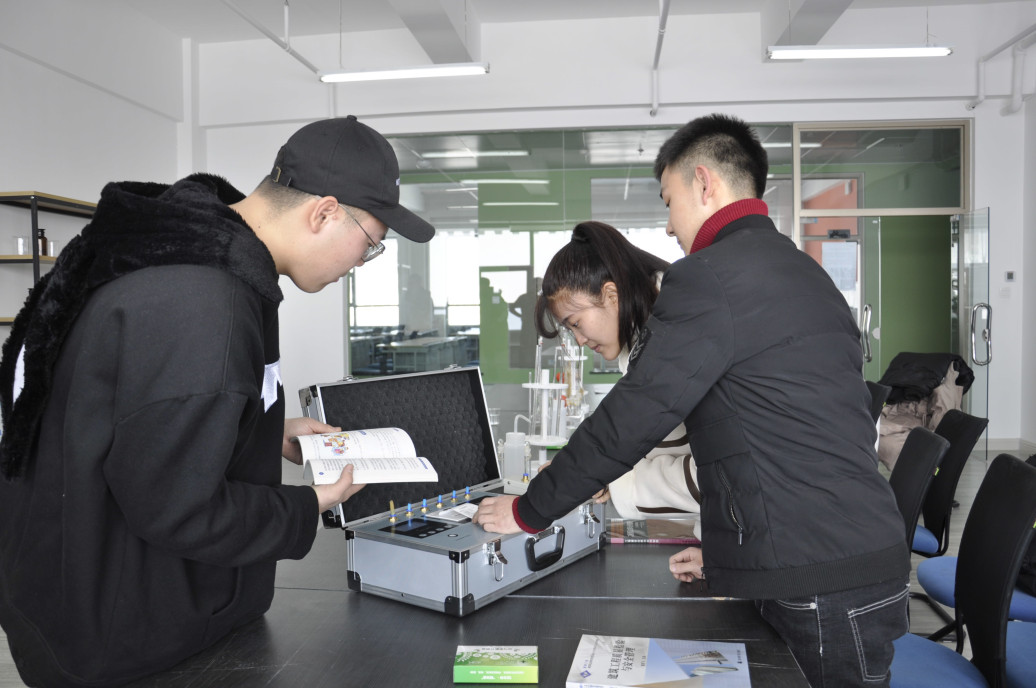 以环保设计为主题的实验室,与省凌霄室内环境监测公司共建实验室,企业定期派技术人员对学生进行技术讲解和指导,让学生了解室内污染物的种类和检测方法,做优质设计。