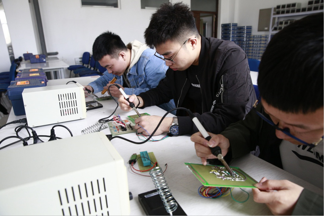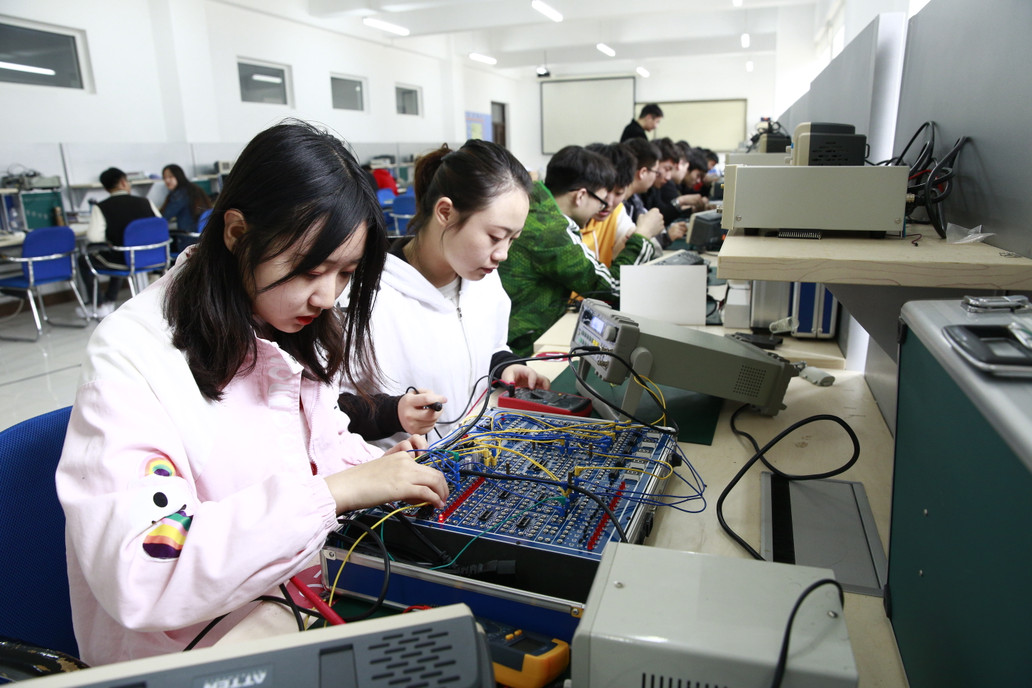 电子技术实验室隶属于电子工程学院,实验室使用面积172.81平方米,主要承担电子信息工程、自动化专业的模拟电路、数字电路课程实验及实习实训课程的教学任务。通过实验使学生加深对理论课程的理解,提高学生对实际电子线路的分析和应用能力。本实验室实行全天开放管理制度,并且免费为学生提供实验耗材,学生可以随时进入,一次性可容纳50名学生同时完成实验实训实验室配有EL实验箱(模电数电实验箱)、电子线路试验箱、双踪示波器、信号发生器、直流电源、频率计等,能够完成模拟、数字电路等相关实验。