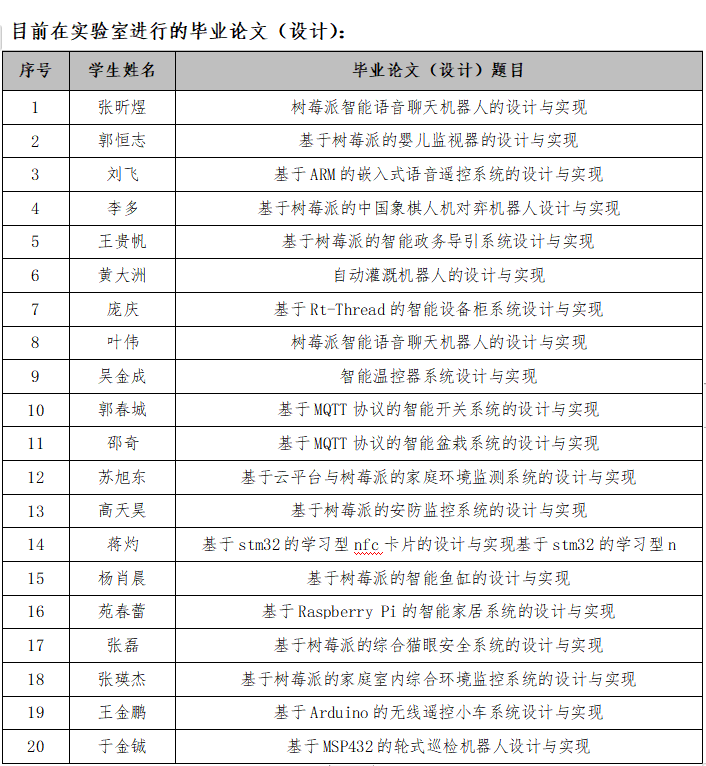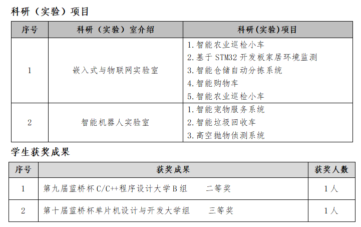 本方向目前有嵌入式与物联网实验室、哈尔滨信息工程学院-德州仪器物联网联合实验室、华清远见嵌入式创新实践基地、哈信息-上海睿赛德RT-Thread操作系统联合实验室等多个实验室和科创基地,可开展单片机、嵌入式、物联网等技术的应用开发以及创新创业实践,承担单片机原理与应用、嵌入式系统原理及应用等专业课的课程建设。本方向所有实验室和科创基地都采用项目组方式进行管理,承担高年级项目、大学生创新创业、大学生竞赛、毕业设计等项目的开发,为学生提供TI、ST、NXP等主流厂商嵌入式、物联网开发平台,强化学生项目开发、管理等实战能力。目前已完成智能家居系统、智能仓储管理系统、物联网网关、智能农业巡检小车、自动浇花小车等多个科创项目的开发。