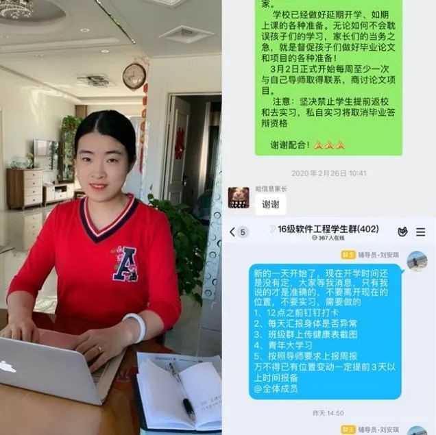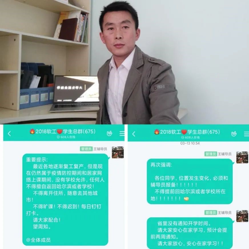 软件学院党总支书记曲丽媛说:“亲爱的同学们,由于疫情,同学们在家呆的时间真的有点久了,更有些同学假期探亲被隔阻在亲戚家,现在疫情防控形势好转,同学们纷纷想回家,想回学校。老师理解你们,更多的是牵挂你们。战“疫”还没有彻底胜利,国外输入病例增加,特别有些人不守规矩,瞒报病情给国人带来新的风险。战“疫”取得今天的成果,是国家付出巨大的财力、人力、物力和无数逆行者的拼命奉献换来的。为了巩固疫情防控的成果,为了你和大家的健康,为了履行疫情防控的责任与义务,我们必须遵守当地政府和学校相关规定,坚持在家上好网课!春来了,回到校园的日子还会远吗?再坚持一下!”