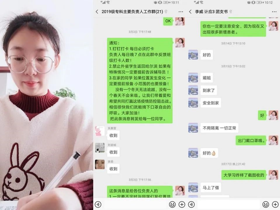 软件学院辅导员张静说:“疫情发生以来,相信同学们跟我一样,不仅密切关注防疫工作,更多的是感动于国家和政府的高效、白衣天使的坚守、爱心人士的奉献以及一批又一批“逆行者”的无畏。在我们看不到的地方,一定还有无数人付出了我们想象不到的艰辛甚至是牺牲。越是到这个时候,我们越应该守住“阵地”,待在家里,好好上网课!”
