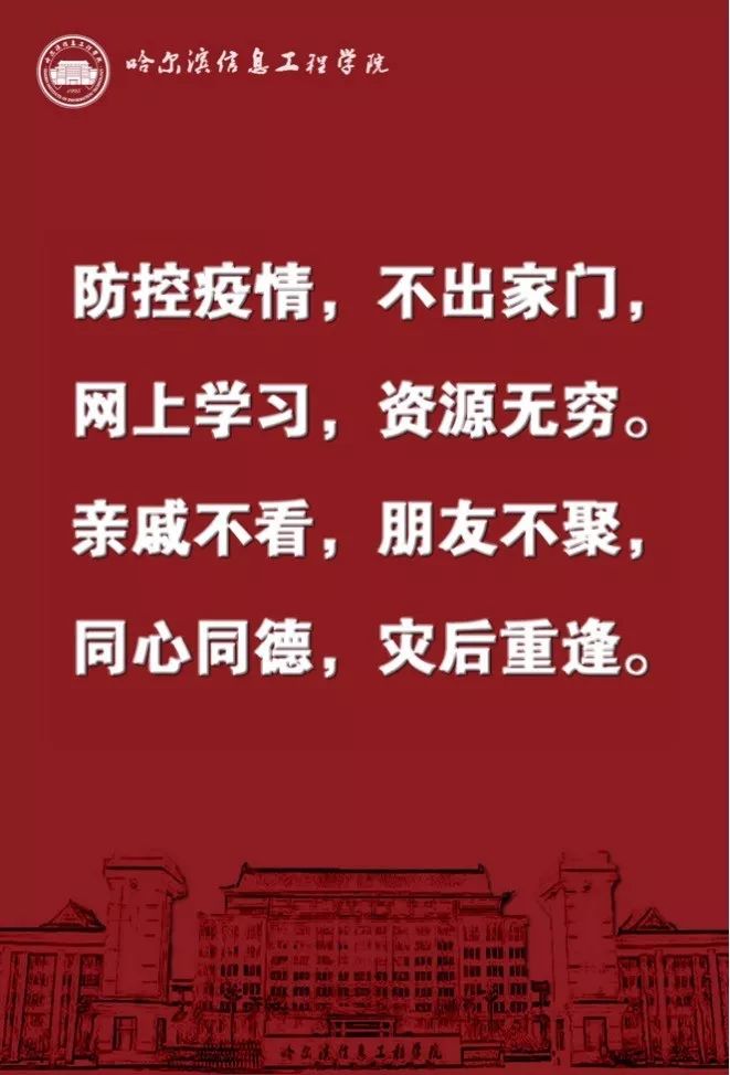 2020既已不能重启,那我们就勇往直前!相信一切都会好起来,就像风雨之后那一道炫目的彩虹。让我们等待春暖花开的那一天,等待万物复苏的那一天,等待最美好的那一天。让我们一起加油,相信未来!我在哈信息,为武汉加油,为中国加油!