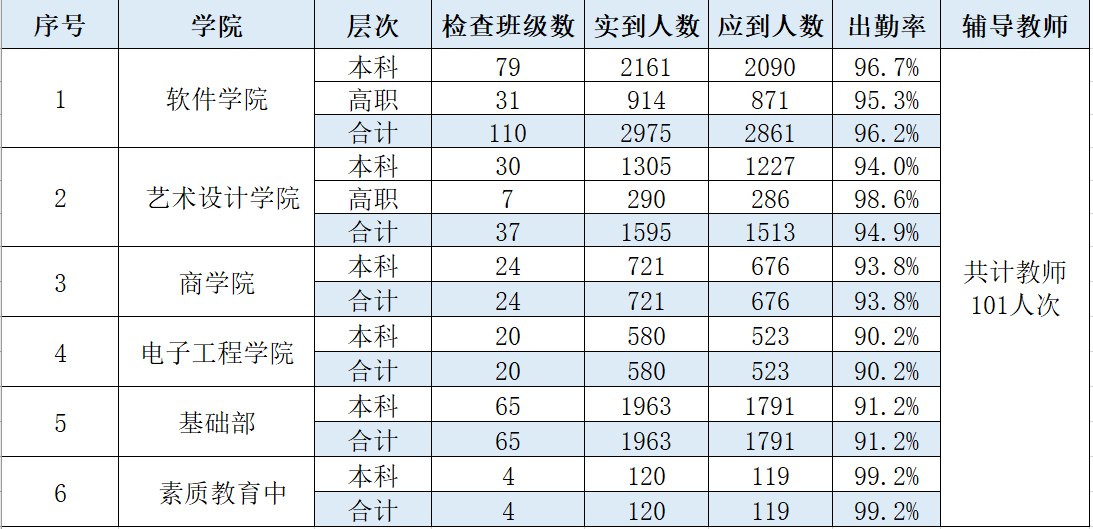 经由教务处及各二级学院领导、教研室主任联合组成的线上教学督导组深入线上课堂检查,本周线上教学整体情况如下: