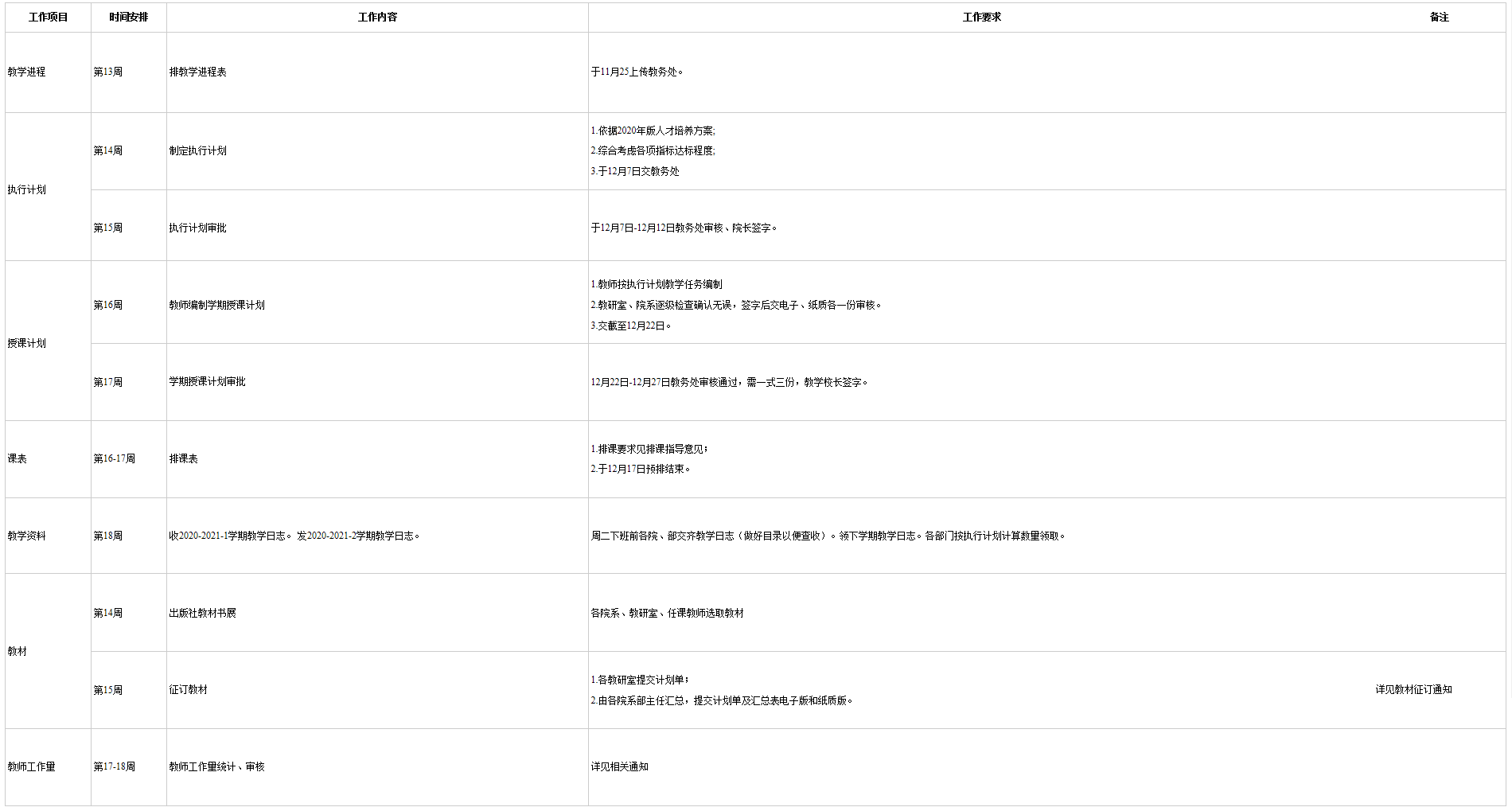 根据本学期教学进程安排,为确保本学期期末和2020-2021-2学期初教学工作的顺利进行,教务处对期末工作安排如下: