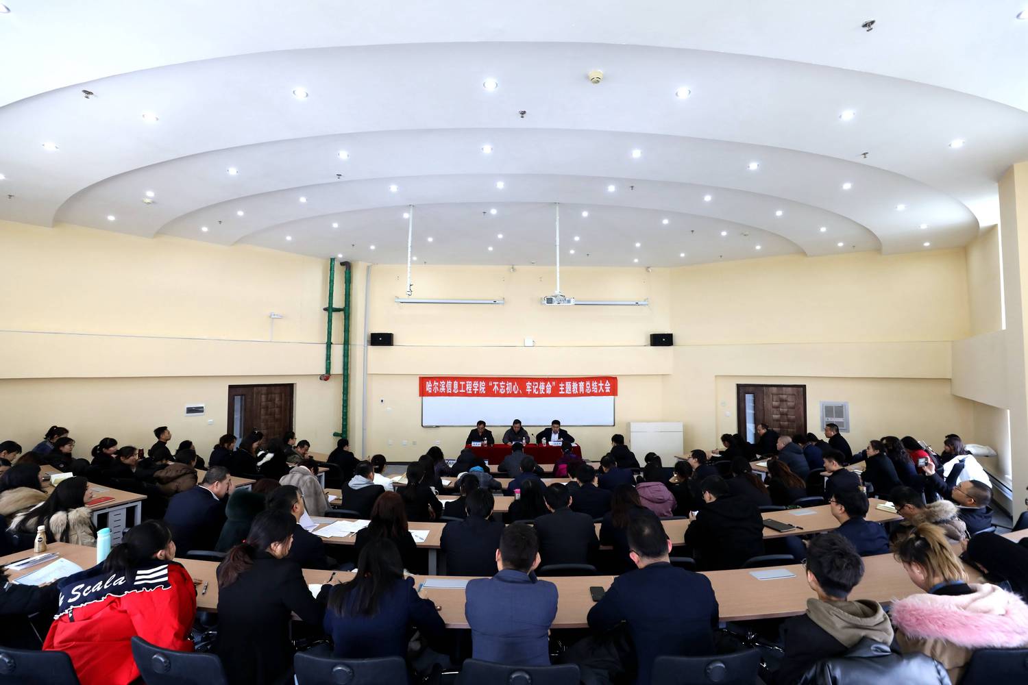 省委教育工委第五指导组副组长郭青山作指导讲话,对我校主题教育工作给予充分肯定。他指出,哈尔滨信息工程学院党委深入学习贯彻习近平新时代中国特色社会主义思想,认真落实中央和省委部署要求,加强领导、精心组织、扎实推进,主题教育取得丰硕成果。广大党员干部真信笃行、知行合一的意识和能力明显提升;思想政治和党性修养得到深刻洗礼锤炼;凝心聚力干事创业的热情和斗志更加高昂;坚持以人民为中心的发展理念更加牢固;知规守纪、廉洁从政的思想防线更加巩固。在推进主题教育过程中,学院党委认真履行主体责任,不折不扣贯彻中央和省委要求,高起点统筹谋划,高标准组织推进;加强指导督导、层层传导压力、落实职责任务,力戒形式主义、官僚主义,有力保证了主题教育不空不偏不走过场。