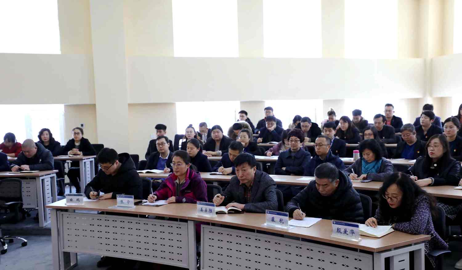 1月11日,学校“不忘初心、牢记使命”主题教育总结大会召开,深入学习贯彻习近平总书记关于“不忘初心、牢记使命”重要讲话精神,认真落实中央、省委主题教育总结大会部署要求,对全校主题教育进行总结。省委教育工委第五指导组副组长郭青山,指导组成员张宁、曲鹏出席会议。学校领导班子、副处级以上干部及党员代表参加会议。会议由党委副书记、副校长李秉治主持。