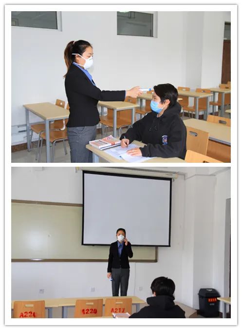 上课期间,A座教学楼217教室发现一名学生有干咳症状,任课教师为其测量体温,发现测量结果异常,任课教师立即上报学校疫情防控小组负责人。