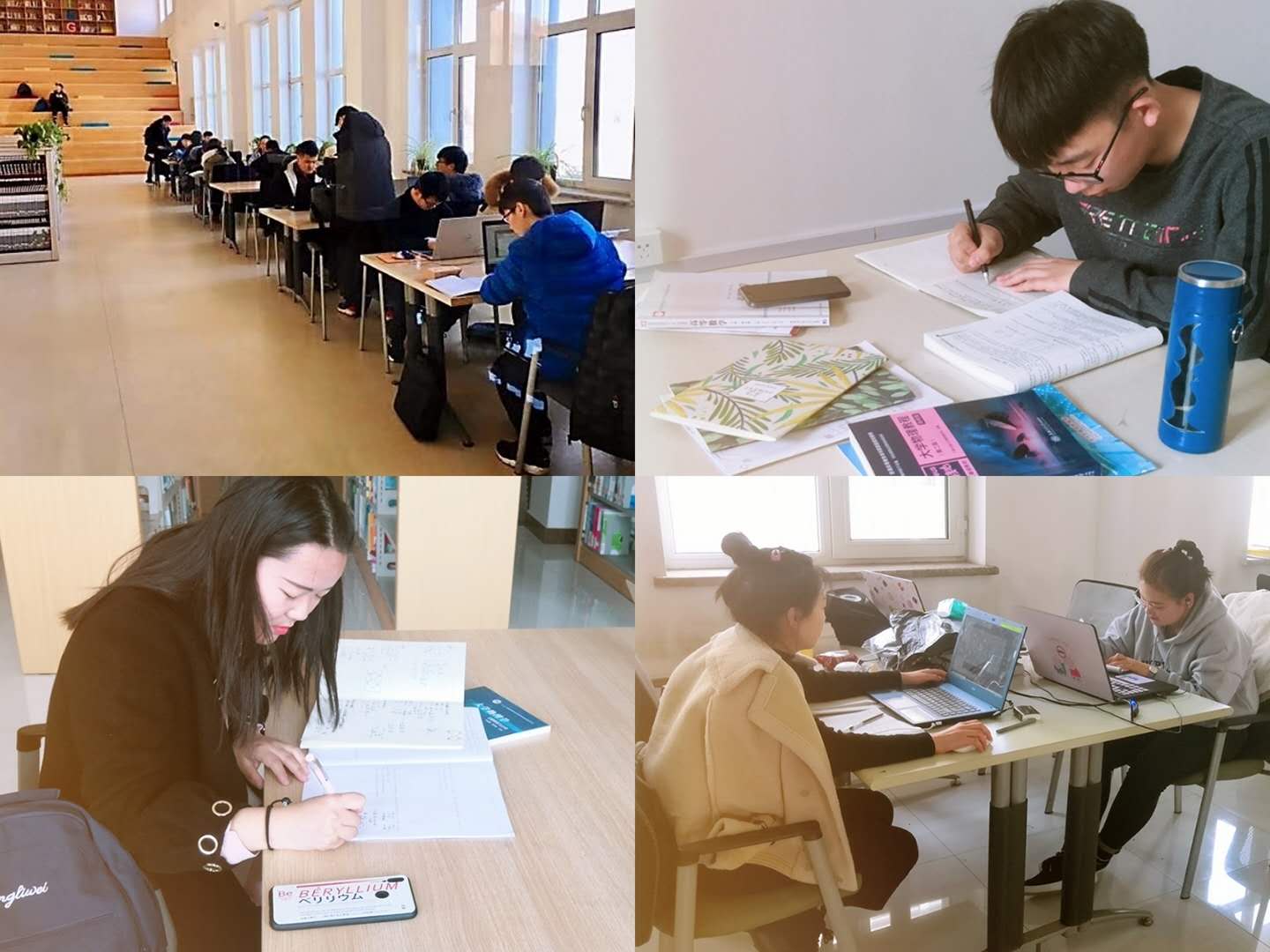 不同于别处的繁华熙攘,这里的同学总是默契的开启了静音模式,悄无声息的忙碌着。或埋头于四六级单词的默写,或进行着考研紧张的复习。