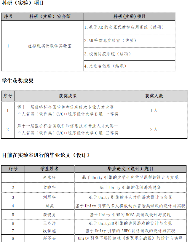 虚拟现实技术专业虚拟现实应用开发方向目前建有虚拟现实云教学实验室、江北笔记本机房。同时校企共建东北地区首家专门培养XR技术人才的黑龙江虚拟现实产业联盟XR产业学院。产业学院面向虚拟现实、增强现实、游戏设计与制作、三维建模等领域,在专业建设、培养方案制订、课程建设、“双师型”教师队伍建设、行业企业专兼职教师选派、校内外实验实训实习、就业基地建设等方面开展深度合作。多个高水平实验室能够同时满足50人同步进行实验实训的教学需求。