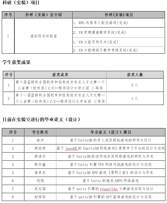 虚拟现实技术专业虚拟现实设计与制作方向目前建有虚拟现实实验室。同时校企共建东北地区首家专门培养XR技术人才的黑龙江虚拟现实产业联盟XR产业学院。多个高水平实验室能够满足实验实训的教学需求。硬件平台以国际主流企业虚拟现实开发套件为主,用于支撑虚拟现实和增强现实角色设计、场景设计与渲染等实验,为本院的虚拟现实技术研究和教学提供了强大的支撑。