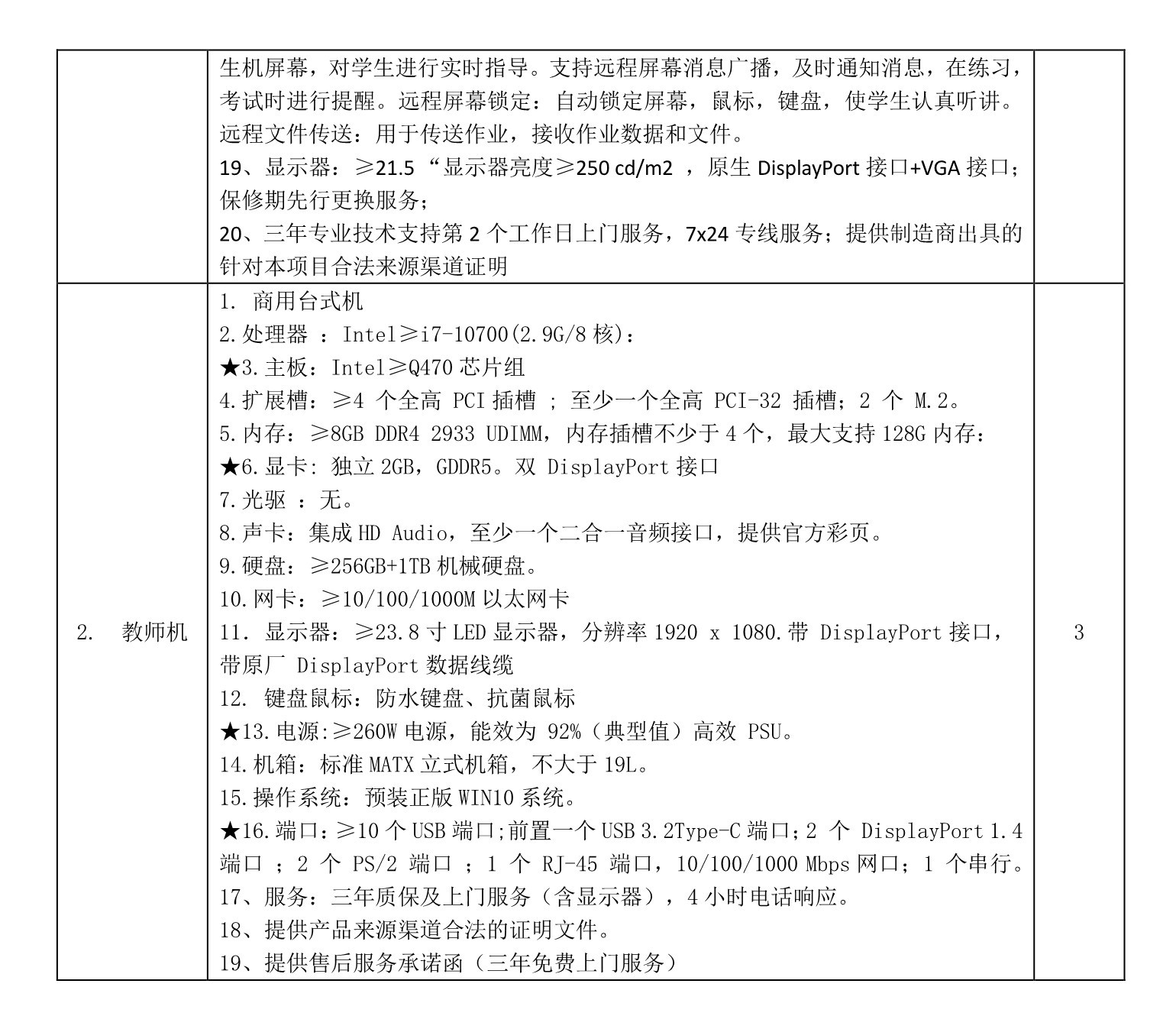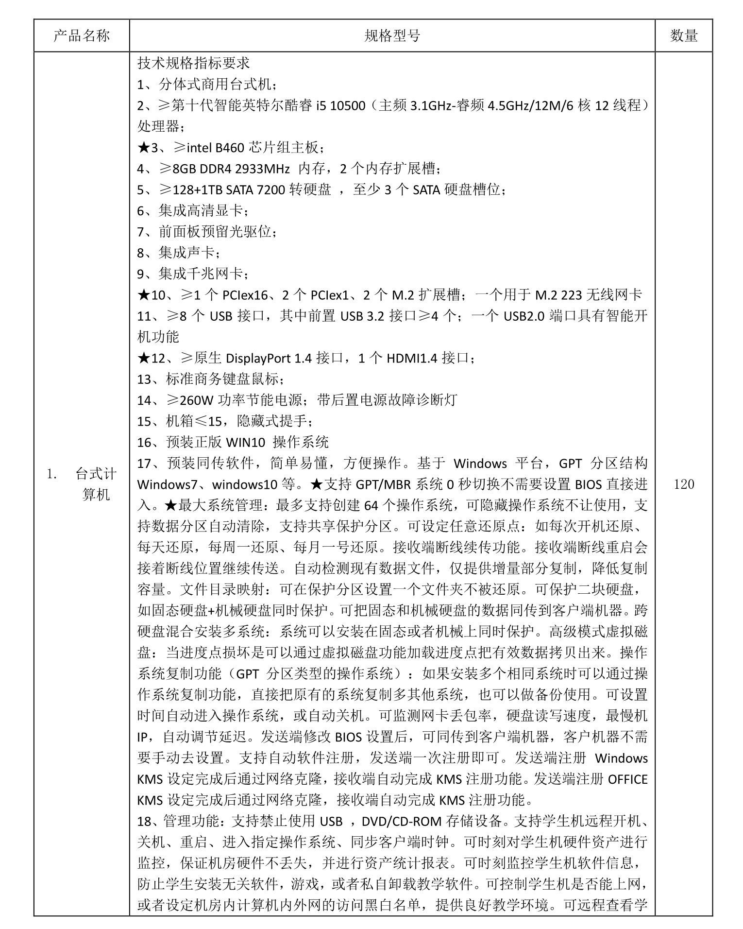 、项目内容:符合计算机参数要求(附带管理功能)