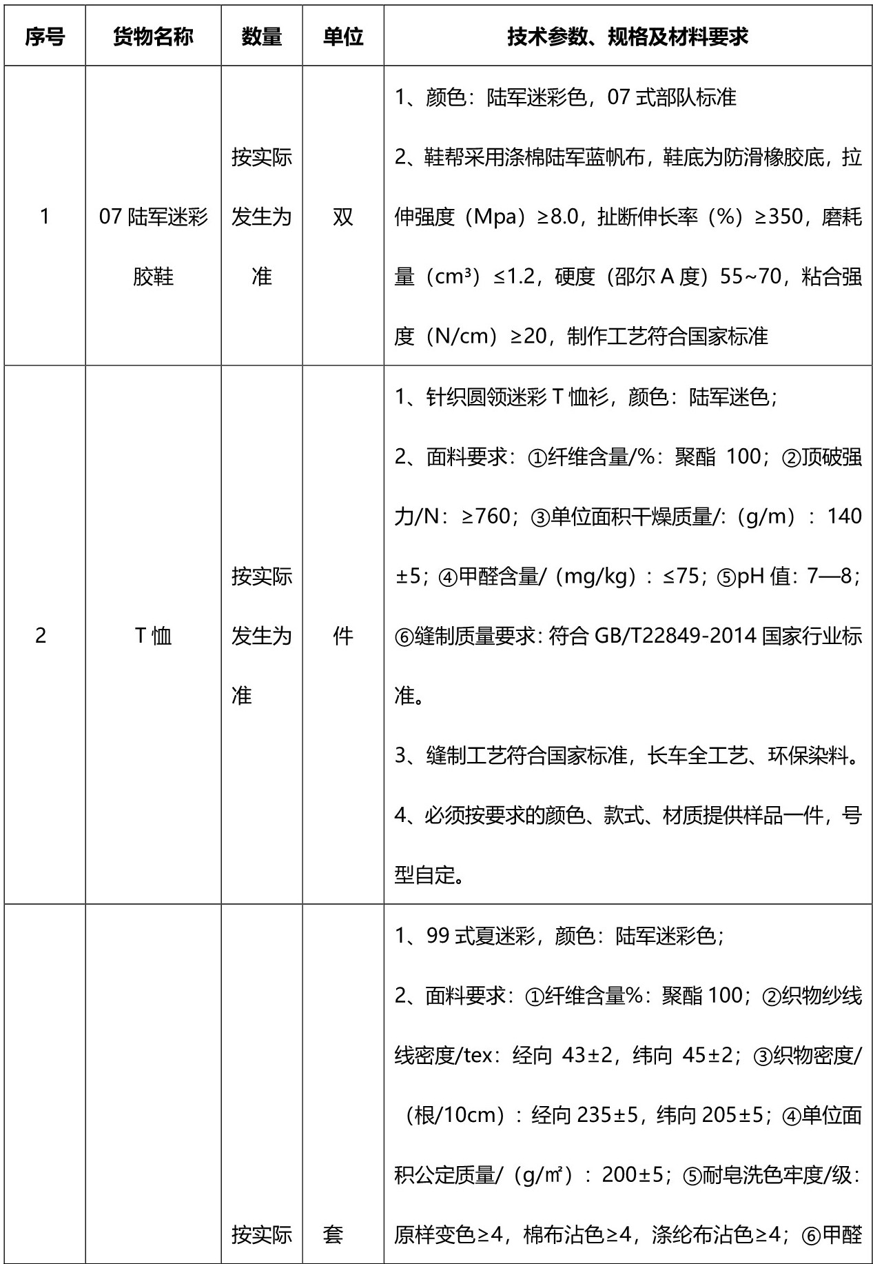 采购需求: