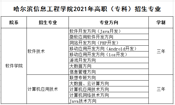 2021年高职(专科)招生专业