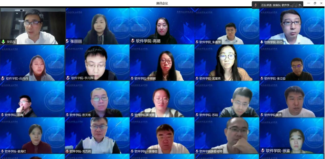2022年11月16日晚19:00,软件学院邀请到俄罗斯工程院外籍院士、国家“千人计划”特聘专家、教育部“长江学者”吴信东教授以网络直播的形式为全校师生带来了题为《HAO智能 = 人类智能(HI)+人工智能(AI)+组织智能(OI)》的专题讲座,张丽丽校长主持了会议,软件学院高璐院长及近300名师生参加了本次报告会。