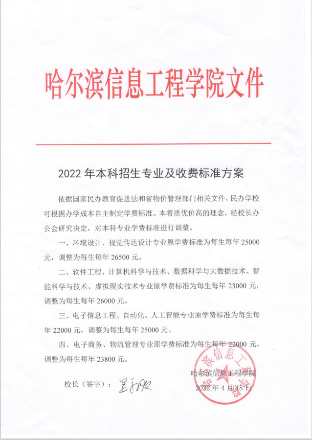 2022年本科招生专业及收费标准方案