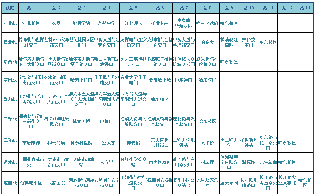 哈东校区通勤车线路图