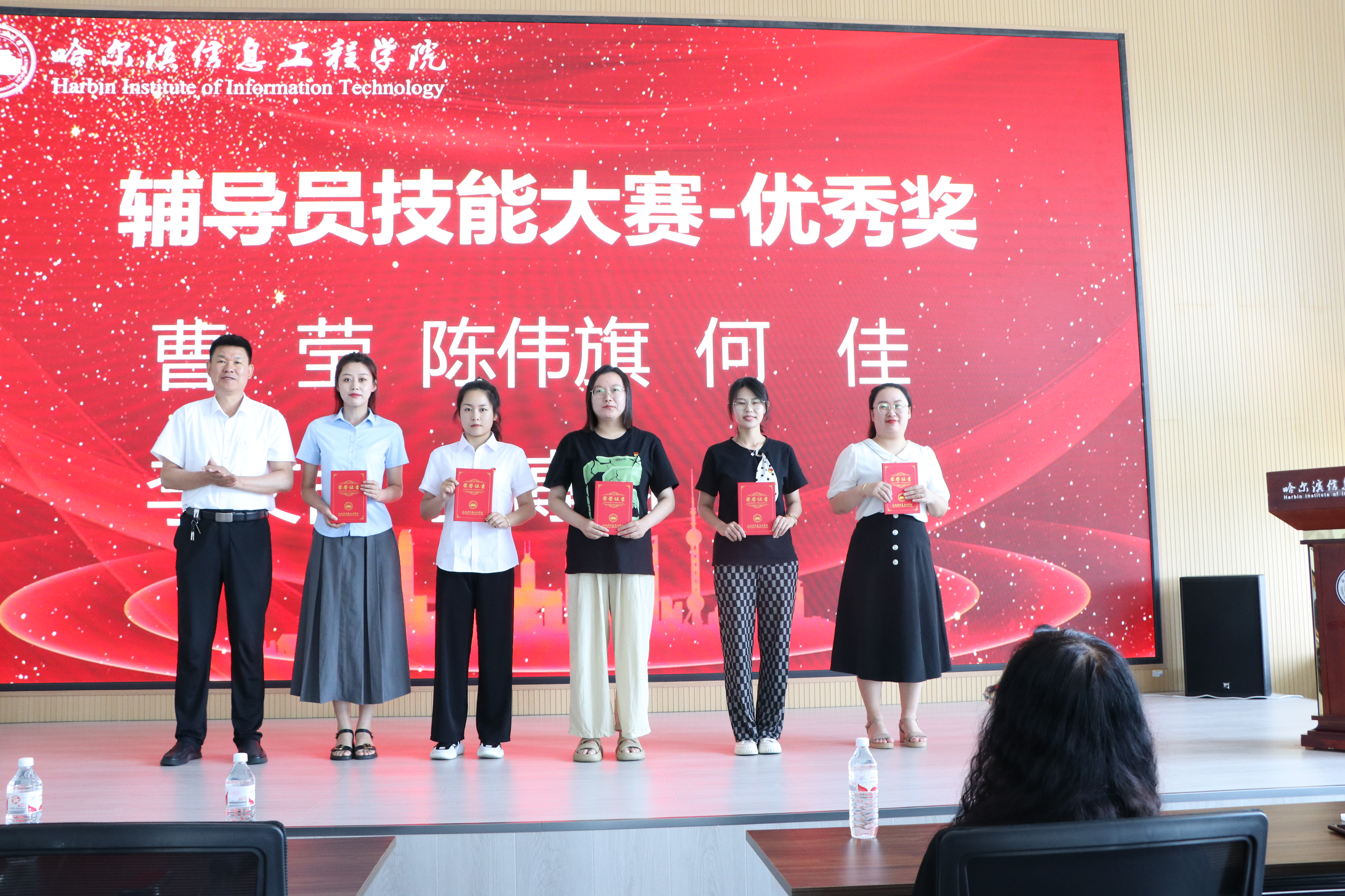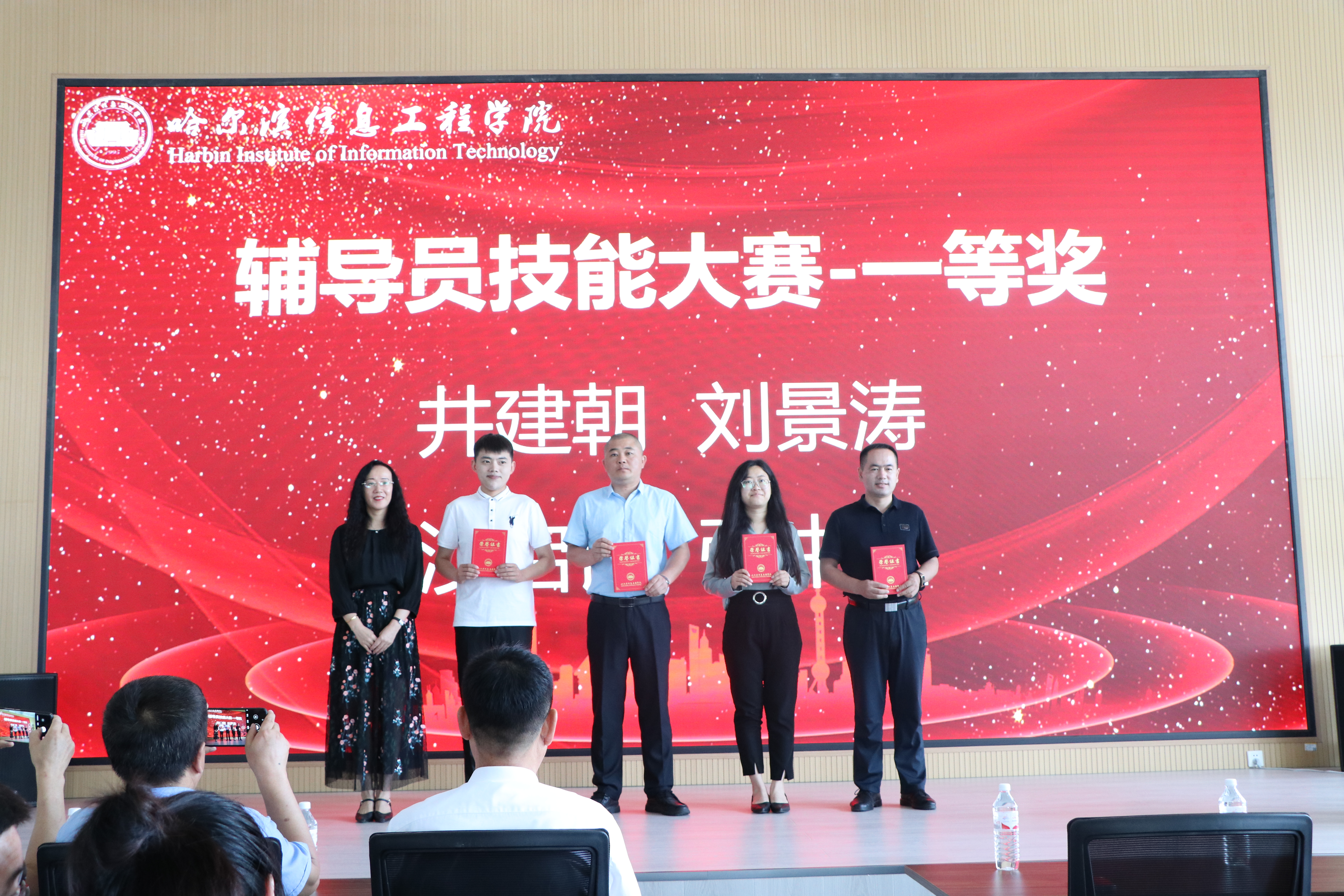 校长助理兼学工部部长殷爱华老师、软件学院党总支书记王会军老师、艺术设计学院党总支书记王军老师、商学院党总支书记王长新老师为荣获本次辅导员技能大赛“优秀奖”、“三等奖”、“二等奖”、“一等奖”老师们颁发荣誉证书并合影留念。本次大赛所取得的优异成绩,是我校辅导员队伍建设取得的重大成果,在我校辅导员队伍走向职业化专业化发展过程中具有里程碑式的意义。