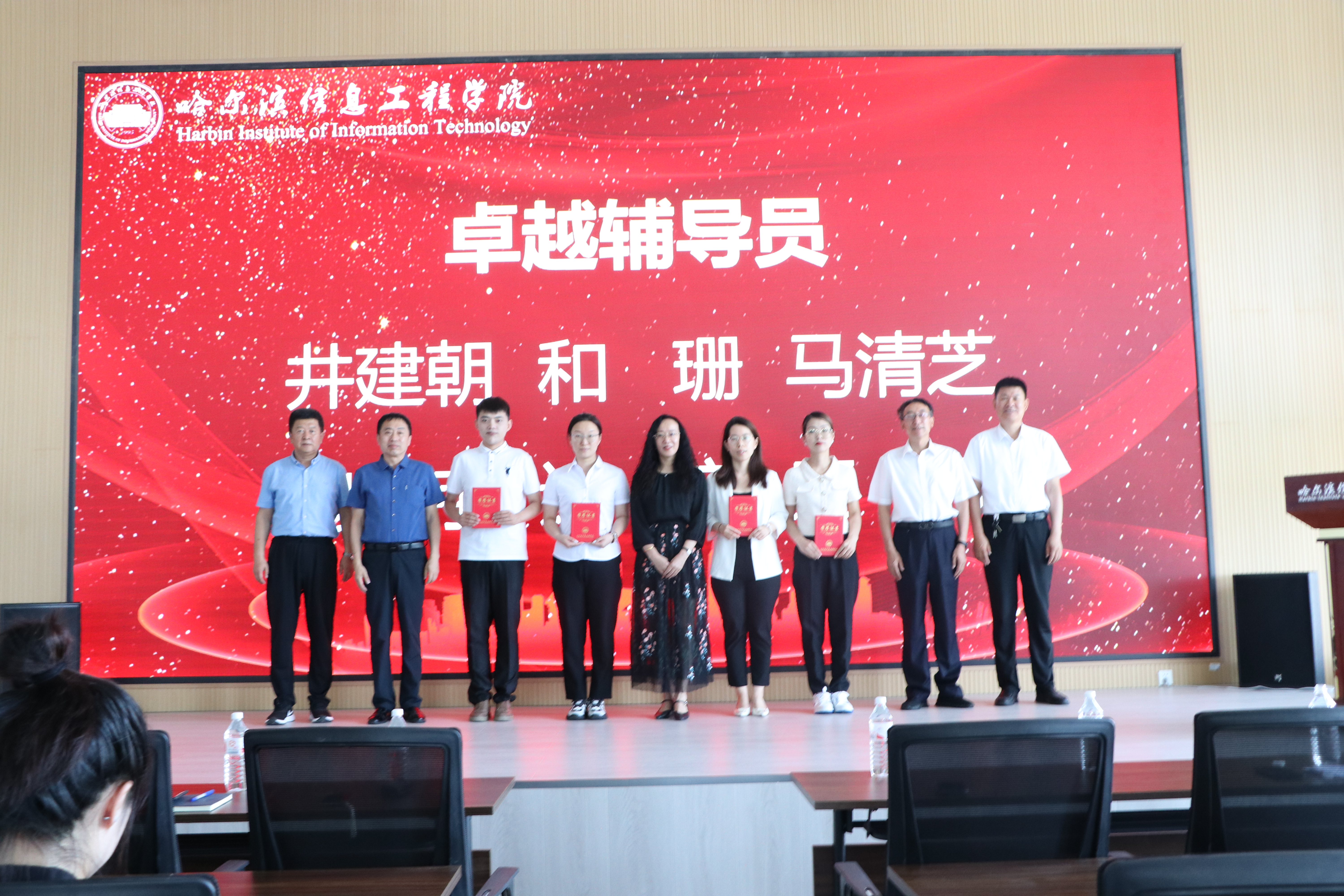 校长助理兼学工部部长殷爱华老师、学生处处长王玉珅老师为荣获本学期“卓越辅导员”、“优秀辅导员”老师们颁发荣誉证书并合影留念。全体学工队伍要以受表彰的同志为榜样,立足本职、发奋图强,努力成为有情怀的教育追梦人,有担当的思政领路人,有魅力的学生知心人。