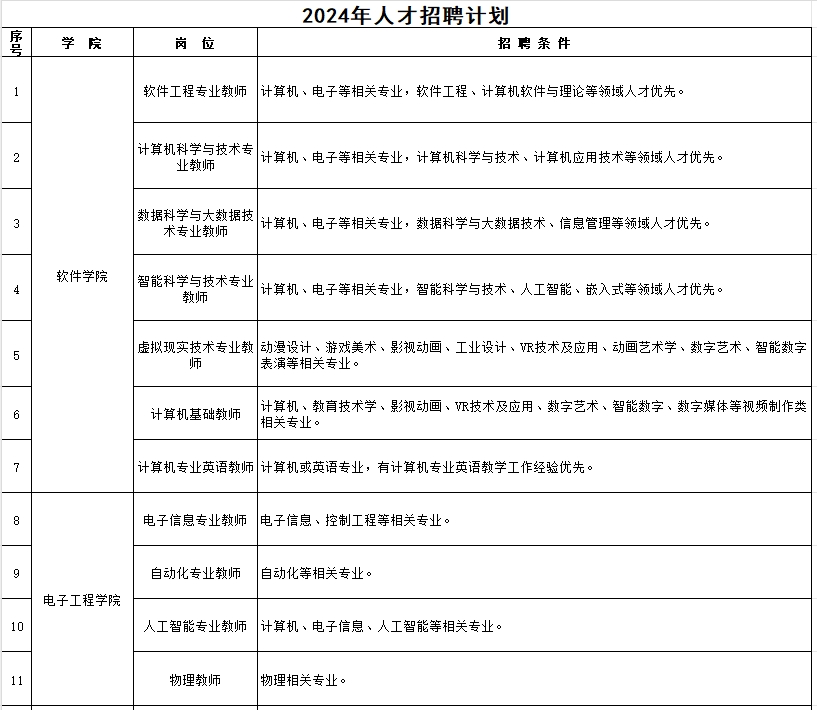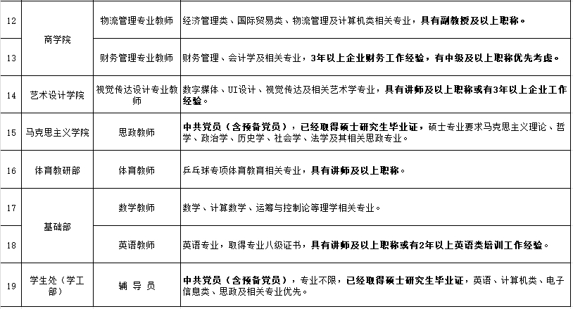 3.应聘人员学历要求硕士研究生及以上学历,本科、硕士所学专业需一致或相近。辅导员需要掌握信息化办公技能并有一定的写作能力。具有副高级及以上专业技术职称人员学历要求可适当放宽。