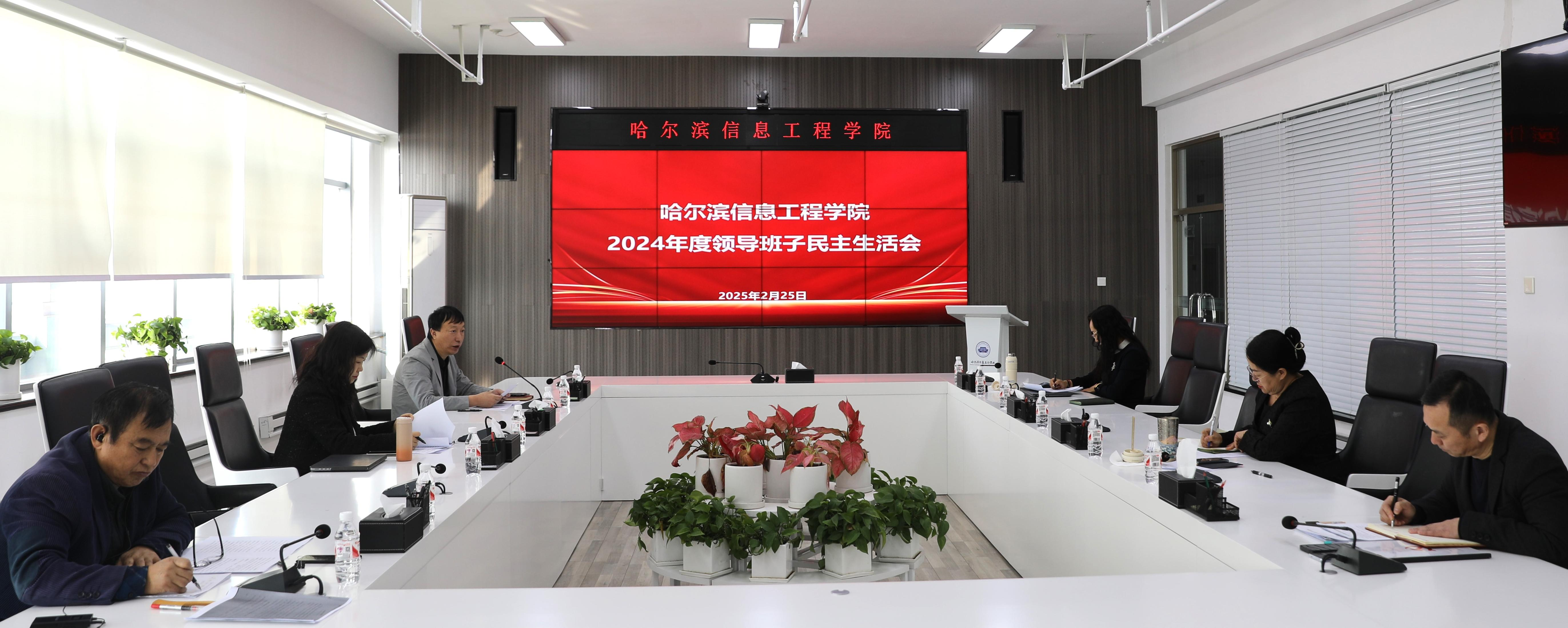 2月25日,中共哈尔滨信息工程学院委员会组织召开2024年度领导班子民主生活会。本次民主生活会的主题是:深入学习贯彻习近平新时代中国特色社会主义思想,巩固深化党纪学习教育成果,综合发挥党的纪律教育约束、保障激励作用,为进一步全面深化改革、奋力谱写中国式现代化龙江新篇章提供坚强纪律保证。学校党委委员全体参会,会议由党委副书记、校长姜宗胜主持。