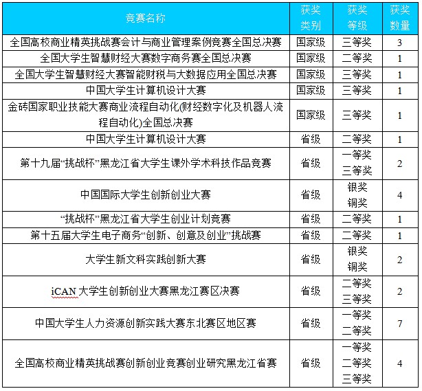 全国大学生智慧财经大赛全国总决赛二等奖、三等奖,获奖数量领先省内同类院校。