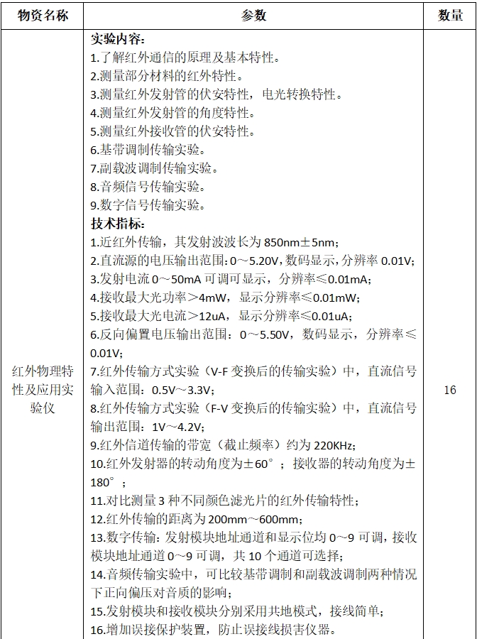 1.项目内容:红外物理特性及应用实验仪