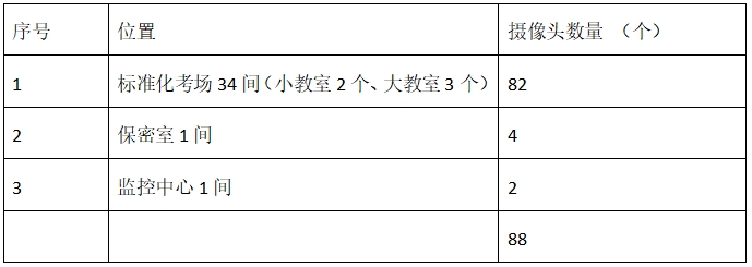 标准化考场34间,保密室1间、视频监控中心1间