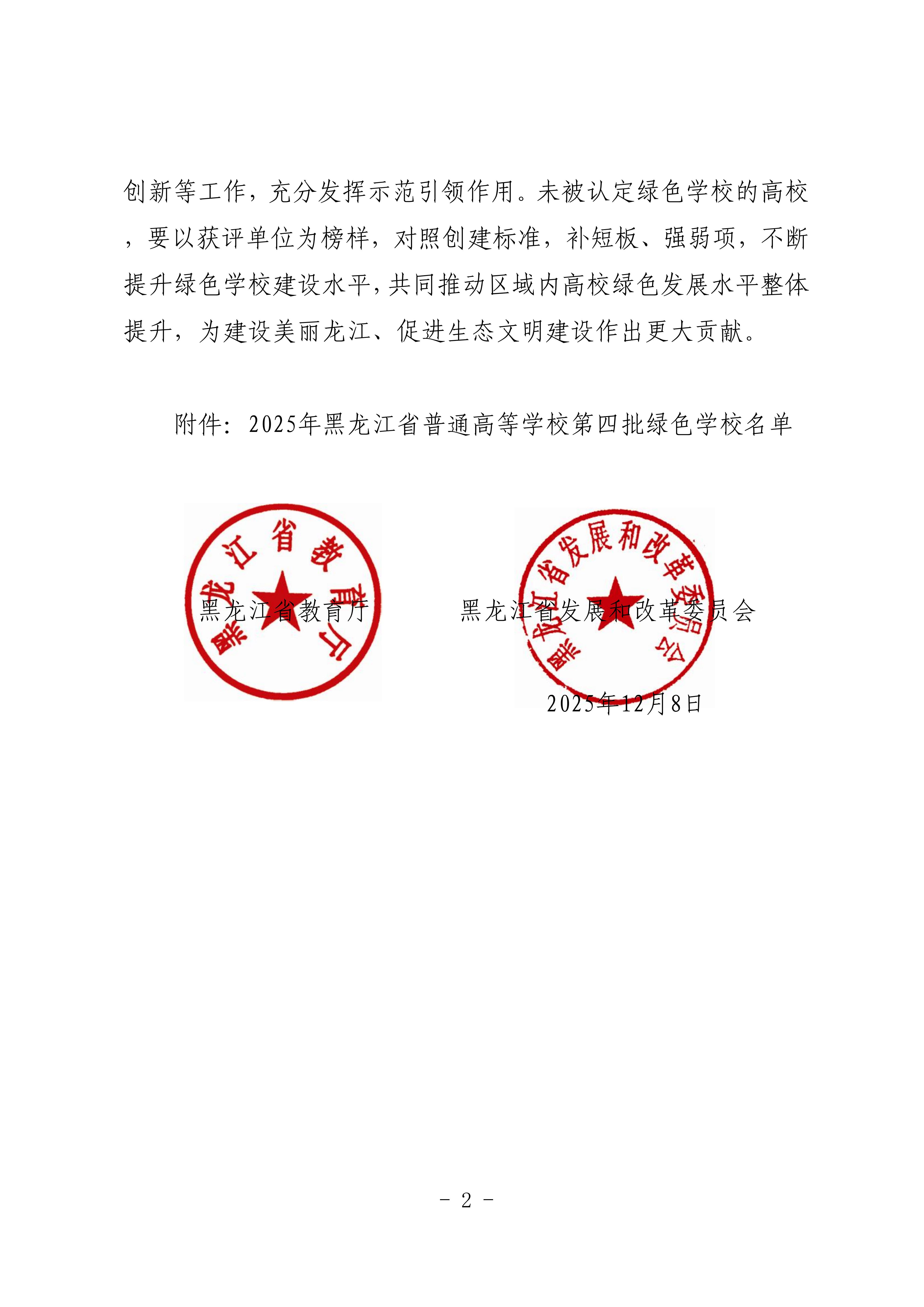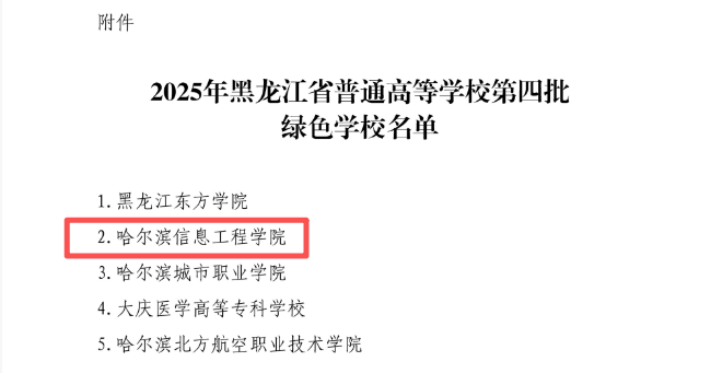 好消息!哈尔滨信息工程学院在2025年黑龙江省高校绿色学校创建评审中,成功获评第四批“绿色学校”!