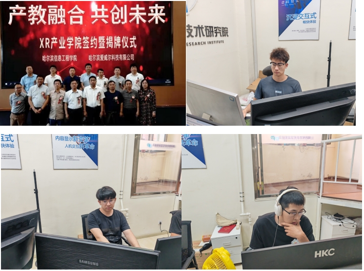 校企共建东北地区首家专门培养XR技术人才的黑龙江虚拟现实产业联盟XR产业学院。能够同时满足80人同步进行实验实训的教学需求。目前专业已有184名同学参与企业实习实践活动,3名同学入职XR产业学院中的哈尔滨爱威尔科技有限公司。