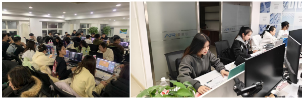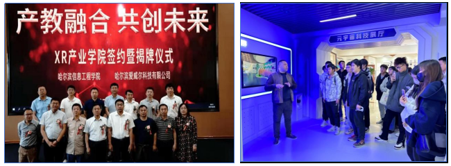 2021年与全国前50强VR企业哈尔滨爱威尔科技有限公司,校企共建东北地区首家专门培养XR技术人才的黑龙江虚拟现实产业联盟XR产业学院。能够同时满足50人同步进行实验实训的教学需求。