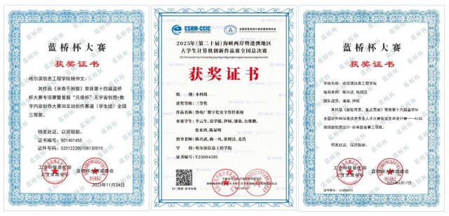 3.2025年海峡两岸暨港澳地大学生计算机创新作品赛全国总决赛三等奖1项。