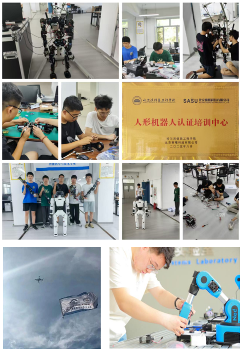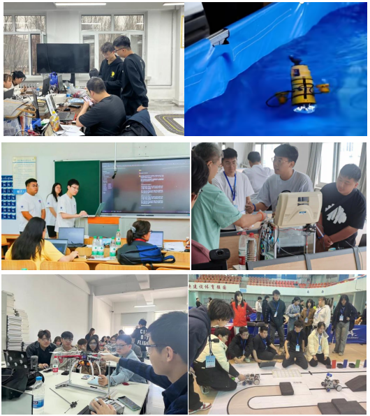 依托学校未来技术中心、学生创新中心、机器人与人工智能实验室、智能系统应用开发实验室、嵌入式系统实验室等8个中心、实验室,打造24H开放实践育人环境,开展人形机器人、无人机集群、水下机器人等实战项目,学生直接参与教师承担的机器人、无人机飞控、大模型应用等真实企业横向课题,构建具身智能、智能硬件开发高地。