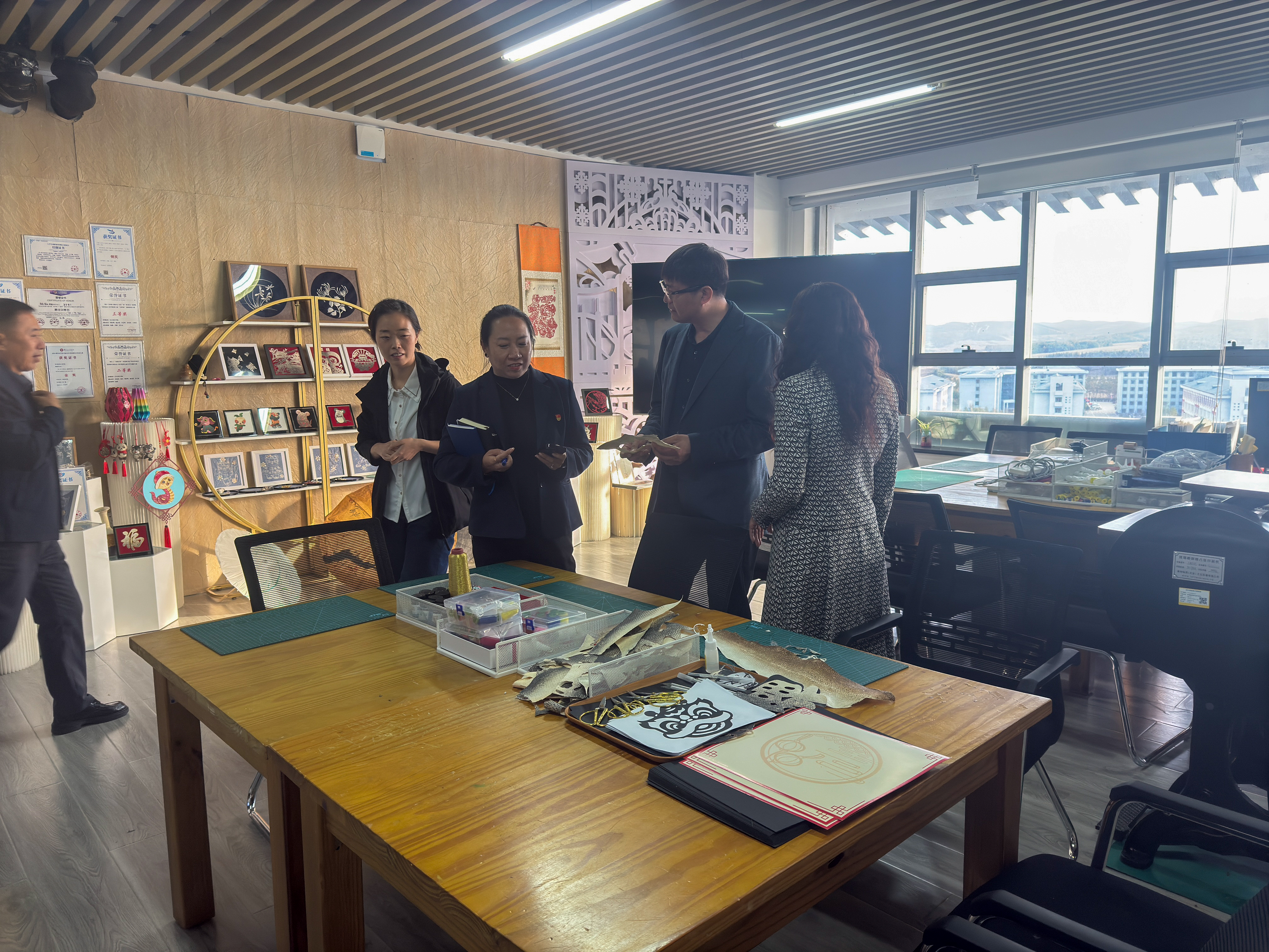 座谈会后,在我校领导的陪同下,剑桥学院代表团一行实地参观了我校艺术设计学院的鱼皮画工作室、软件学院实验室及艺体中心。来宾们对我校先进的实验实训设施、鲜明的办学特色以及艺术设计学院在传承与创新非物质文化遗产(如鱼皮画技艺)方面取得的成果给予了高度评价。