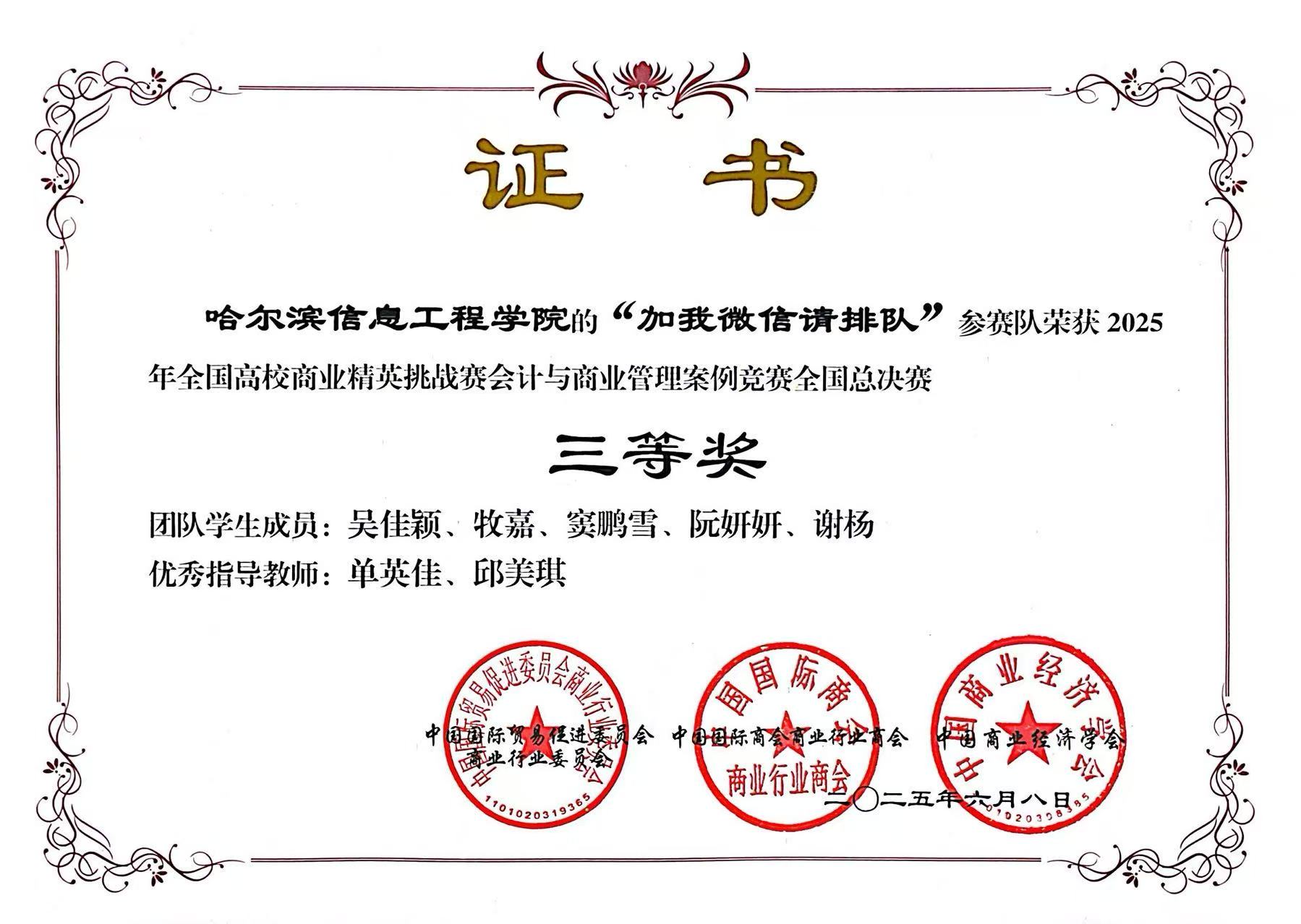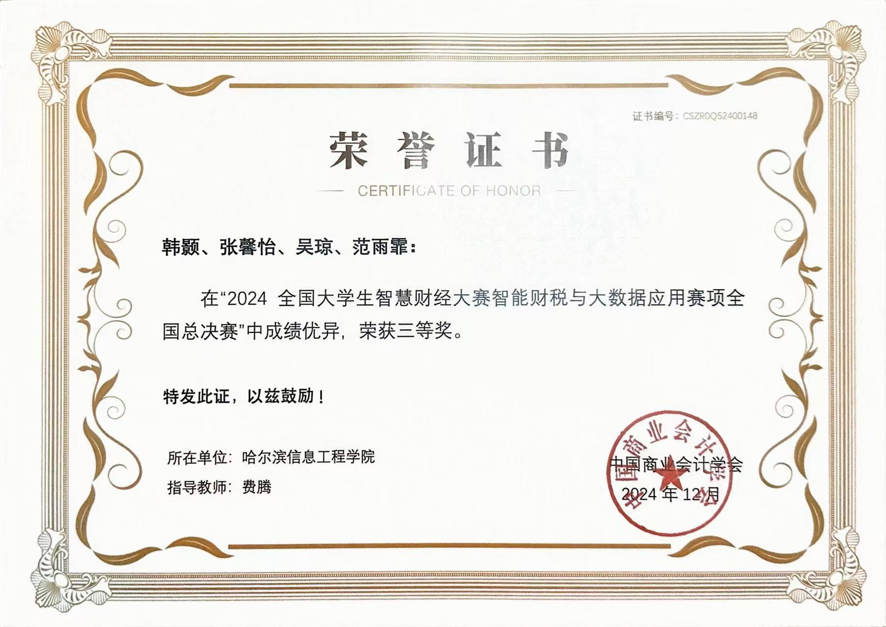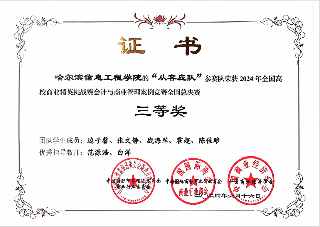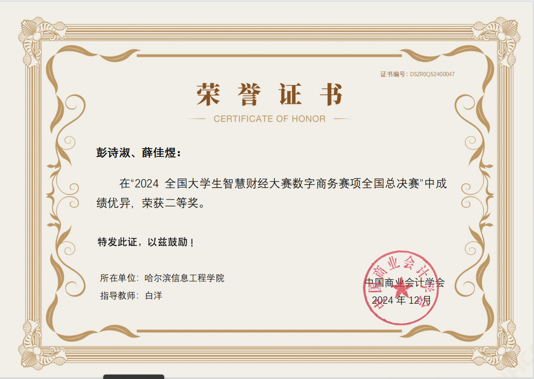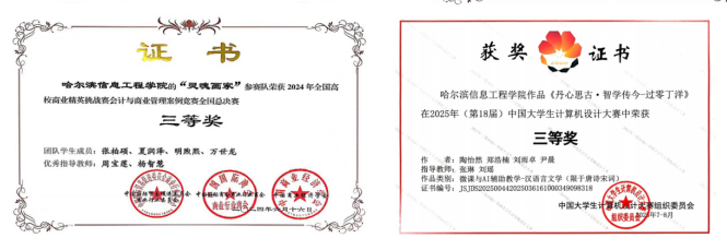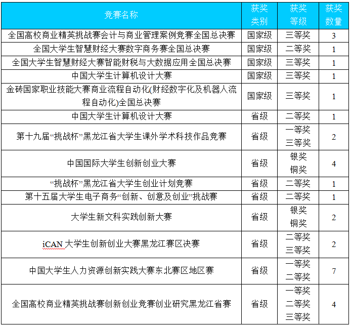 全国大学生智慧财经大赛全国总决赛二等奖、三等奖,获奖数量领先省内同类院校。
