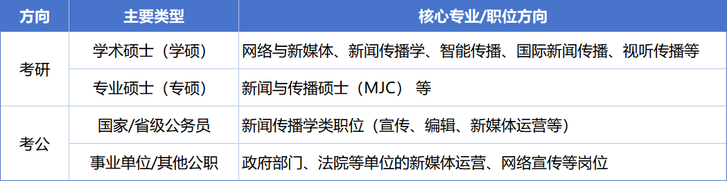 AIGC内容策划师、数据新闻记者、智能媒体产品经理、短视频编导、影视后期设计师、直播运营导演、全媒体运营师、新媒体营销专员、舆情分析师、媒介专员、政务新媒体与公益传播等。岗位高度对口,专业知识与技能与市场需求高度匹配。