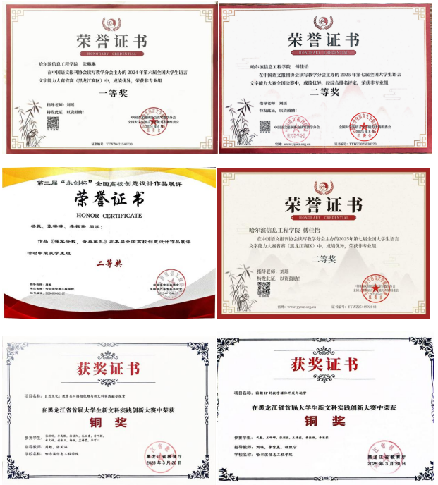 专业坚持“以赛促学、以赛促创”,将大学生创意广告大赛、中国创新影像大赛、中国大学生微电影大赛等国家级权威赛事融入教学。累计获得国家级奖项10余项,获得省级奖项70余项,包括文字能力、创意设计、新文科实践、新媒体策划等各类赛事;另获校级奖项120项。这些奖项不仅是学业成果的证明,更是求职升学的“硬通货”,让学生的专业竞争力在实战中得到认可,为高质量就业与未来发展铺就坚实道路。