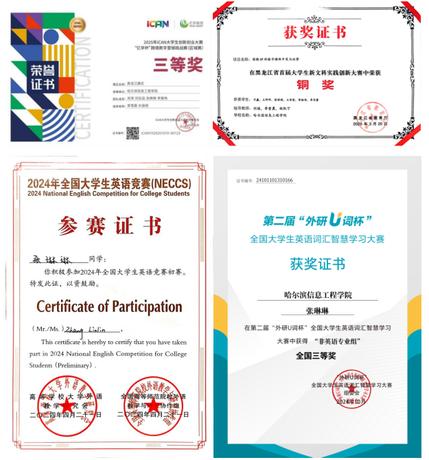 先后获得“省教育系统先进个人”“市级新时代‘四有’好老师”。中国高等教育学会会员;第八、九届中国国际“互联网+”大学生创新创业大赛-评审专家;湖南五八农服技术有限公司-业务顾问。2023年10月第三批省级一流课程建设负责人,获黑龙江省第二届高等学校课程思政教学竞赛人个三等奖,主持项目获批黑龙江省高等教育学会第二十一次优秀高等教育研究成果二等奖,指导学生获得省级以上竞赛奖项20余项,承担横向课题10余项。