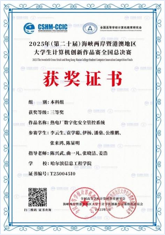 近三年学生累计斩获省级以上奖项200余项(其中国家级45项、省级160余项),完成大学生创新创业训练项目100余项,在睿抗机器人开发者大赛、全国大学生嵌入式芯片与系统设计竞赛、蓝桥杯、传智杯等顶级赛事中屡获国家级殊荣。在2025年的ISCC(全国大学生信息安全竞赛)中是黑龙江省唯一一所获得国家级一等奖院校。