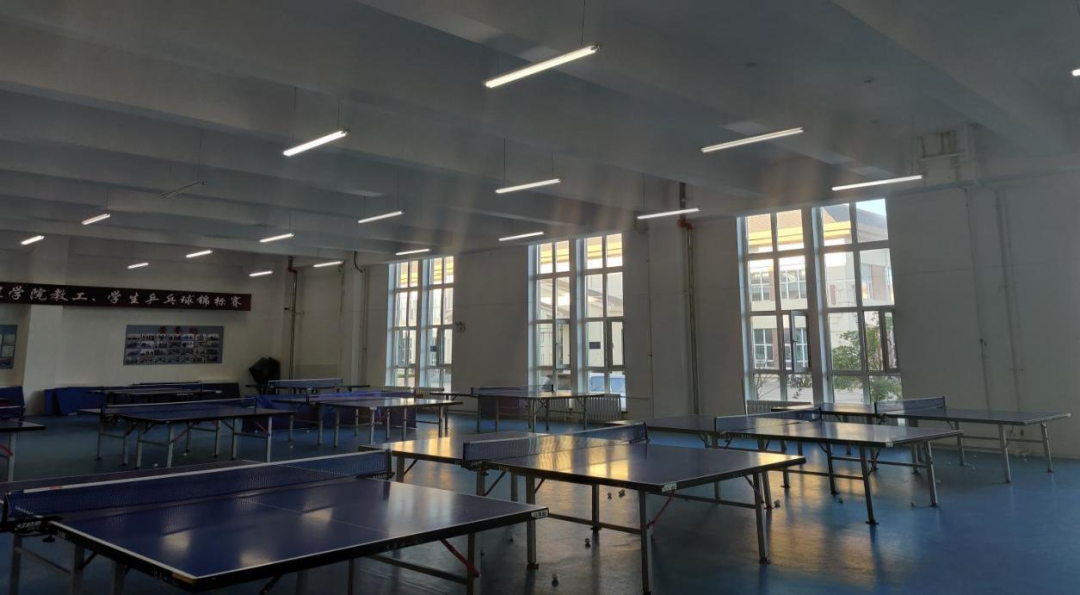 乒乓球馆内置13个乒乓球台,29台动感单车,供师生免费使用,为师生的业余锻炼提供优越的环境