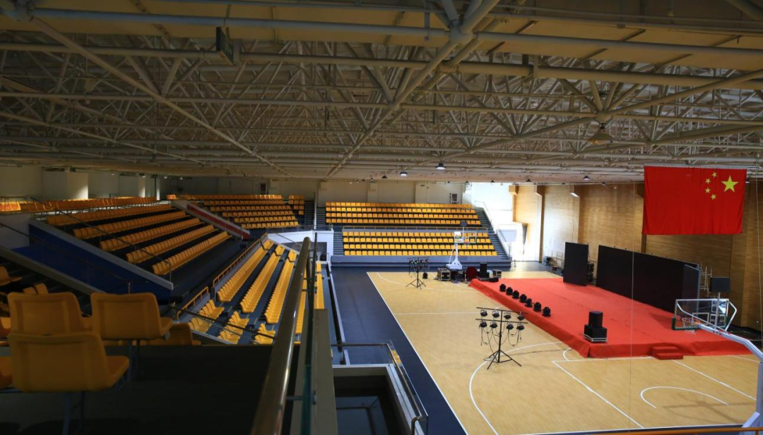 体育馆内设置完善,面积为1979平方米,看台设有1200多个座椅,内置一个标准篮球比赛场地和一个多功能LED屏幕舞台,可举办大型比赛及大型的文艺演出。