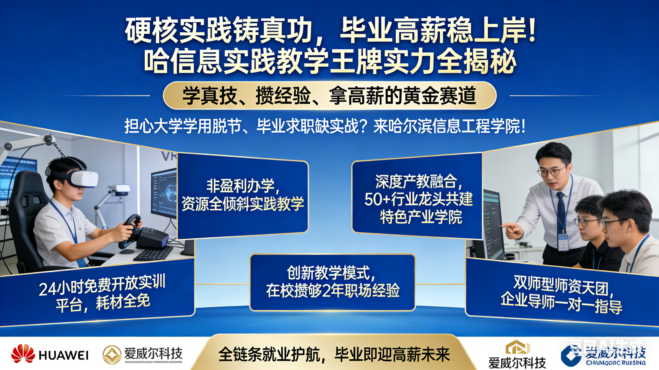 担心大学学用脱节、毕业求职缺实战?来哈尔滨信息工程学院!我们坚守非盈利办学初心,将资源全倾斜于实践教学,以深度产教融合为核心