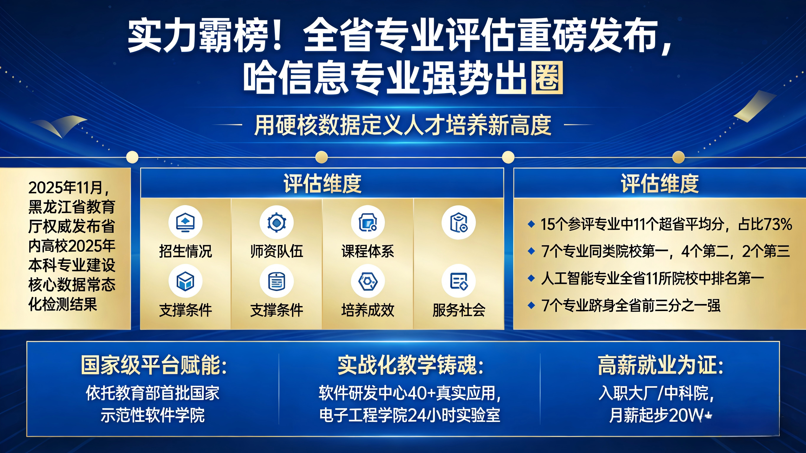 2025年11月,黑龙江省教育厅权威发布省内高校2025年本科专业建设核心数据常态化检测结果。在这场覆盖全省、指标严苛的“教学质量大阅兵”中,哈尔滨信息工程学院以绝对实力强势霸榜!